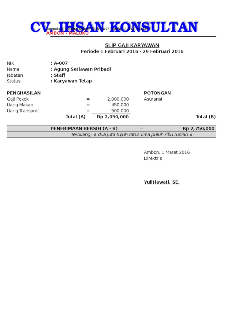 Karenanya dalam pembuatan slip gaji karyawan ini, harus sebaik mungkin supaya. Contoh slip gaji karyawan excel akan di bagikan di blog contoh surat lamaran kerja ini. Yang lagi belajar microsof excel monggo. Contoh slip gaji perusahaan karyawan dalam format excel dan word untuk pns,karyawan swasta, guru, manajer sederhana dan lengkap tersedia download format pdf. Ini akan membantu kamu dalam hal mengatur management pemberian gaji ke seluruh karyawan di perusahaan dimana kamu bekerja.